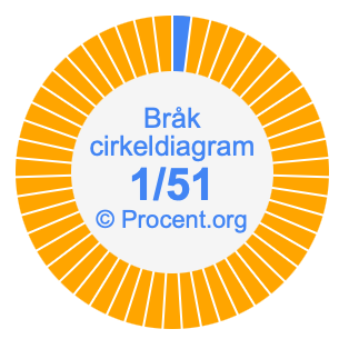 Dessutom kommer vi också att illustrera bråket 1/51 i ett cirkeldiagram och 1/51 som procent i ett cirkeldiagram.