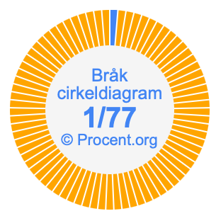 Dessutom kommer vi också att illustrera bråket 1/77 i ett cirkeldiagram och 1/77 som procent i ett cirkeldiagram.