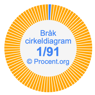 Dessutom kommer vi också att illustrera bråket 1/91 i ett cirkeldiagram och 1/91 som procent i ett cirkeldiagram.