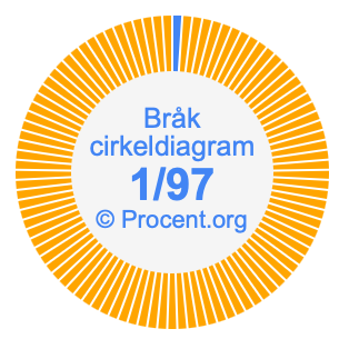 Dessutom kommer vi också att illustrera bråket 1/97 i ett cirkeldiagram och 1/97 som procent i ett cirkeldiagram.