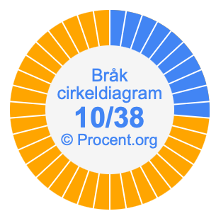 10/38 är ett bråk som betyder 10 av 38, och procent betyder något av 100. Vi kan därför göra följande ekvation för att få 10/38 som procent: