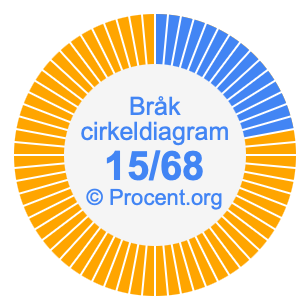 Dessutom kommer vi också att illustrera bråket 15/68 i ett cirkeldiagram och 15/68 som procent i ett cirkeldiagram.