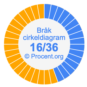 Illustrationerna nedan visar hur 16/36 och 44,44% delar upp ett cirkeldiagram olika men täcker samma område eftersom de är desamma.
