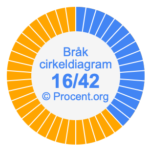 Illustrationerna nedan visar hur 16/42 och 38,1% delar upp ett cirkeldiagram olika men täcker samma område eftersom de är desamma.