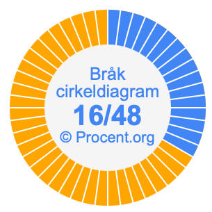 Illustrationerna nedan visar hur 16/48 och 33,33% delar upp ett cirkeldiagram olika men täcker samma område eftersom de är desamma.