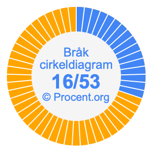 Illustrationerna nedan visar hur 16/53 och 30,19% delar upp ett cirkeldiagram olika men täcker samma område eftersom de är desamma.