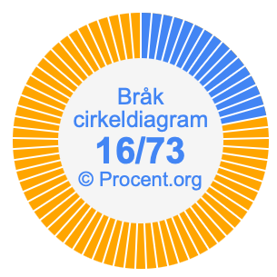 Dessutom kommer vi också att illustrera bråket 16/73 i ett cirkeldiagram och 16/73 som procent i ett cirkeldiagram.
