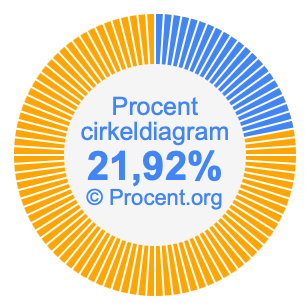Illustrationerna nedan visar hur 16/73 och 21,92% delar upp ett cirkeldiagram olika men täcker samma område eftersom de är desamma.