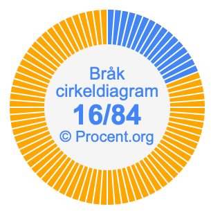 Dessutom kommer vi också att illustrera bråket 16/84 i ett cirkeldiagram och 16/84 som procent i ett cirkeldiagram.