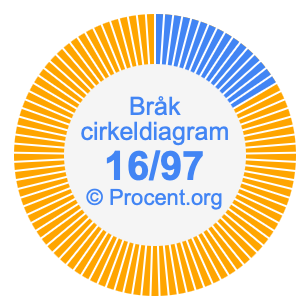 Dessutom kommer vi också att illustrera bråket 16/97 i ett cirkeldiagram och 16/97 som procent i ett cirkeldiagram.