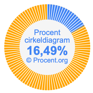 Illustrationerna nedan visar hur 16/97 och 16,49% delar upp ett cirkeldiagram olika men täcker samma område eftersom de är desamma.
