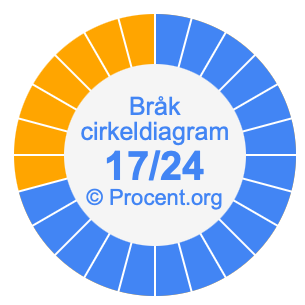 Illustrationerna nedan visar hur 17/24 och 70,83% delar upp ett cirkeldiagram olika men täcker samma område eftersom de är desamma.