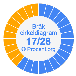 Dessutom kommer vi också att illustrera bråket 17/28 i ett cirkeldiagram och 17/28 som procent i ett cirkeldiagram.