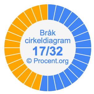 Illustrationerna nedan visar hur 17/32 och 53,13% delar upp ett cirkeldiagram olika men täcker samma område eftersom de är desamma.