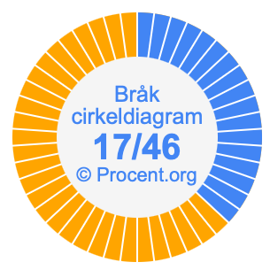 Dessutom kommer vi också att illustrera bråket 17/46 i ett cirkeldiagram och 17/46 som procent i ett cirkeldiagram.