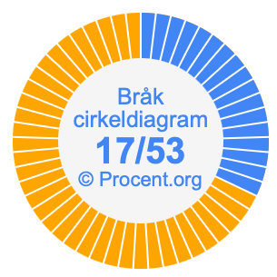 Illustrationerna nedan visar hur 17/53 och 32,08% delar upp ett cirkeldiagram olika men täcker samma område eftersom de är desamma.