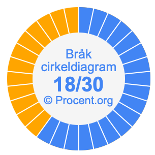 Illustrationerna nedan visar hur 18/30 och 60% delar upp ett cirkeldiagram olika men täcker samma område eftersom de är desamma.