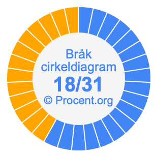 Illustrationerna nedan visar hur 18/31 och 58,06% delar upp ett cirkeldiagram olika men täcker samma område eftersom de är desamma.