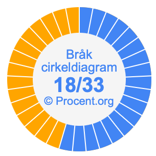 Illustrationerna nedan visar hur 18/33 och 54,55% delar upp ett cirkeldiagram olika men täcker samma område eftersom de är desamma.