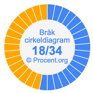 Dessutom kommer vi också att illustrera bråket 18/34 i ett cirkeldiagram och 18/34 som procent i ett cirkeldiagram.