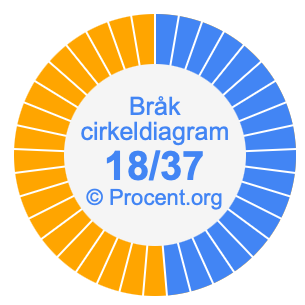 Dessutom kommer vi också att illustrera bråket 18/37 i ett cirkeldiagram och 18/37 som procent i ett cirkeldiagram.