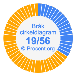 Illustrationerna nedan visar hur 19/56 och 33,93% delar upp ett cirkeldiagram olika men täcker samma område eftersom de är desamma.