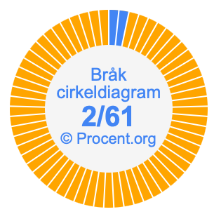 Dessutom kommer vi också att illustrera bråket 2/61 i ett cirkeldiagram och 2/61 som procent i ett cirkeldiagram.