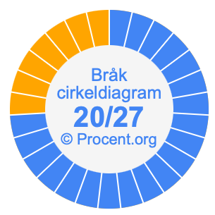 Illustrationerna nedan visar hur 20/27 och 74,07% delar upp ett cirkeldiagram olika men täcker samma område eftersom de är desamma.