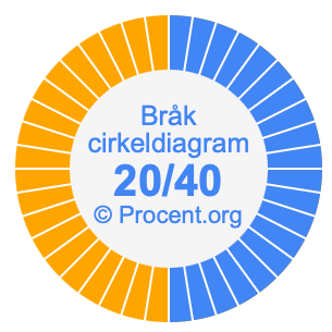 Dessutom kommer vi också att illustrera bråket 20/40 i ett cirkeldiagram och 20/40 som procent i ett cirkeldiagram.