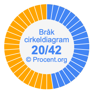 Illustrationerna nedan visar hur 20/42 och 47,62% delar upp ett cirkeldiagram olika men täcker samma område eftersom de är desamma.