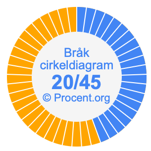 Illustrationerna nedan visar hur 20/45 och 44,44% delar upp ett cirkeldiagram olika men täcker samma område eftersom de är desamma.