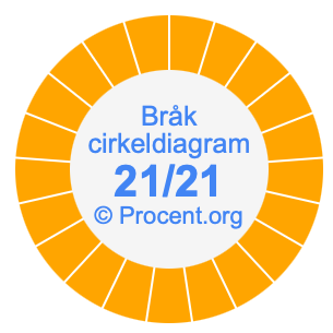 Dessutom kommer vi också att illustrera bråket 21/21 i ett cirkeldiagram och 21/21 som procent i ett cirkeldiagram.