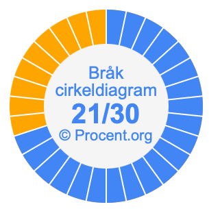 Illustrationerna nedan visar hur 21/30 och 70% delar upp ett cirkeldiagram olika men täcker samma område eftersom de är desamma.