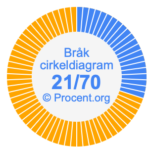 Dessutom kommer vi också att illustrera bråket 21/70 i ett cirkeldiagram och 21/70 som procent i ett cirkeldiagram.