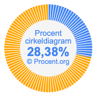 Illustrationerna nedan visar hur 21/74 och 28,38% delar upp ett cirkeldiagram olika men täcker samma område eftersom de är desamma.