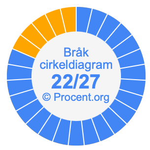 Dessutom kommer vi också att illustrera bråket 22/27 i ett cirkeldiagram och 22/27 som procent i ett cirkeldiagram.