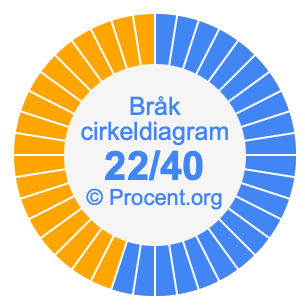 Illustrationerna nedan visar hur 22/40 och 55% delar upp ett cirkeldiagram olika men täcker samma område eftersom de är desamma.
