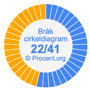 Illustrationerna nedan visar hur 22/41 och 53,66% delar upp ett cirkeldiagram olika men täcker samma område eftersom de är desamma.