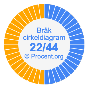Illustrationerna nedan visar hur 22/44 och 50% delar upp ett cirkeldiagram olika men täcker samma område eftersom de är desamma.