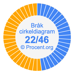 Dessutom kommer vi också att illustrera bråket 22/46 i ett cirkeldiagram och 22/46 som procent i ett cirkeldiagram.