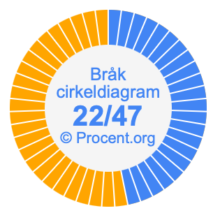Dessutom kommer vi också att illustrera bråket 22/47 i ett cirkeldiagram och 22/47 som procent i ett cirkeldiagram.