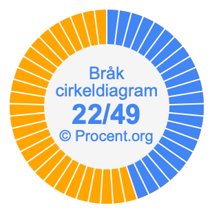 Illustrationerna nedan visar hur 22/49 och 44,9% delar upp ett cirkeldiagram olika men täcker samma område eftersom de är desamma.
