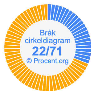 Dessutom kommer vi också att illustrera bråket 22/71 i ett cirkeldiagram och 22/71 som procent i ett cirkeldiagram.