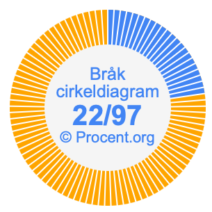 Dessutom kommer vi också att illustrera bråket 22/97 i ett cirkeldiagram och 22/97 som procent i ett cirkeldiagram.