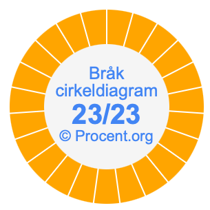 Dessutom kommer vi också att illustrera bråket 23/23 i ett cirkeldiagram och 23/23 som procent i ett cirkeldiagram.