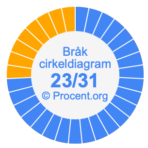 Dessutom kommer vi också att illustrera bråket 23/31 i ett cirkeldiagram och 23/31 som procent i ett cirkeldiagram.