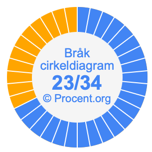 Illustrationerna nedan visar hur 23/34 och 67,65% delar upp ett cirkeldiagram olika men täcker samma område eftersom de är desamma.