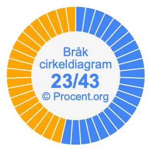 Illustrationerna nedan visar hur 23/43 och 53,49% delar upp ett cirkeldiagram olika men täcker samma område eftersom de är desamma.