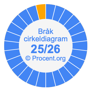 Dessutom kommer vi också att illustrera bråket 25/26 i ett cirkeldiagram och 25/26 som procent i ett cirkeldiagram.