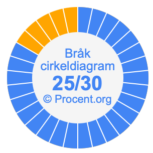 Illustrationerna nedan visar hur 25/30 och 83,33% delar upp ett cirkeldiagram olika men täcker samma område eftersom de är desamma.